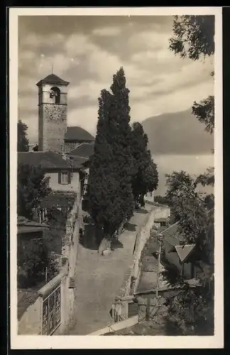 AK Ascona /Lago Maggiore, Strassenpartie mit Bergpanorama