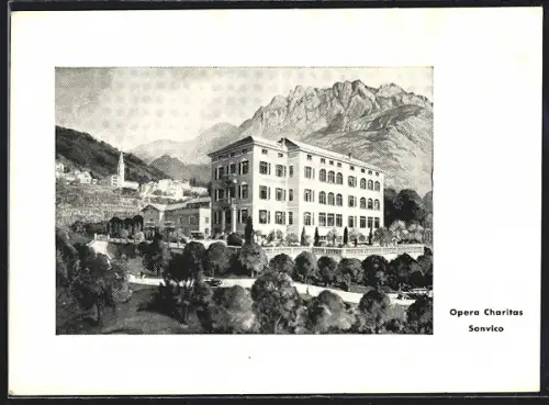 AK Monti-Locarno, Erholungsheim Tabor aus der Vogelschau