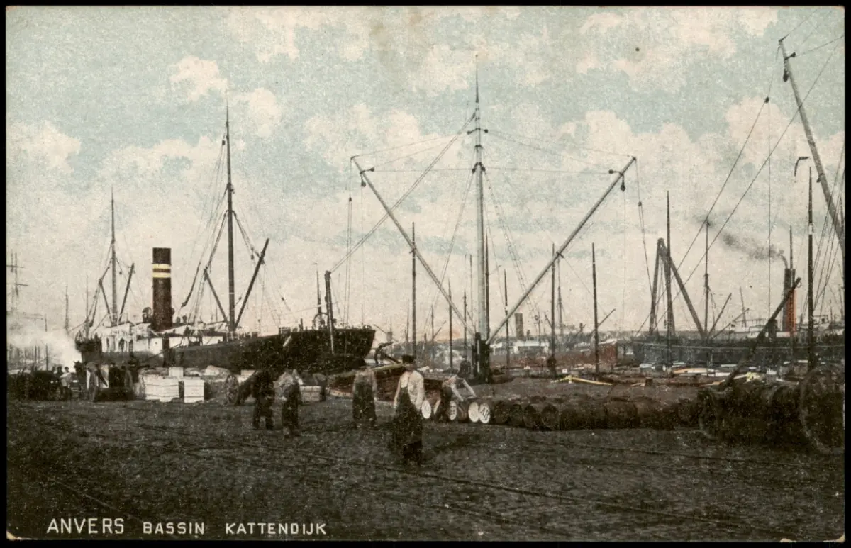 Antwerpen Anvers HAFEN BASSIN KATTENDIJK Arbeiter Entladung Frachtschiff 1910
