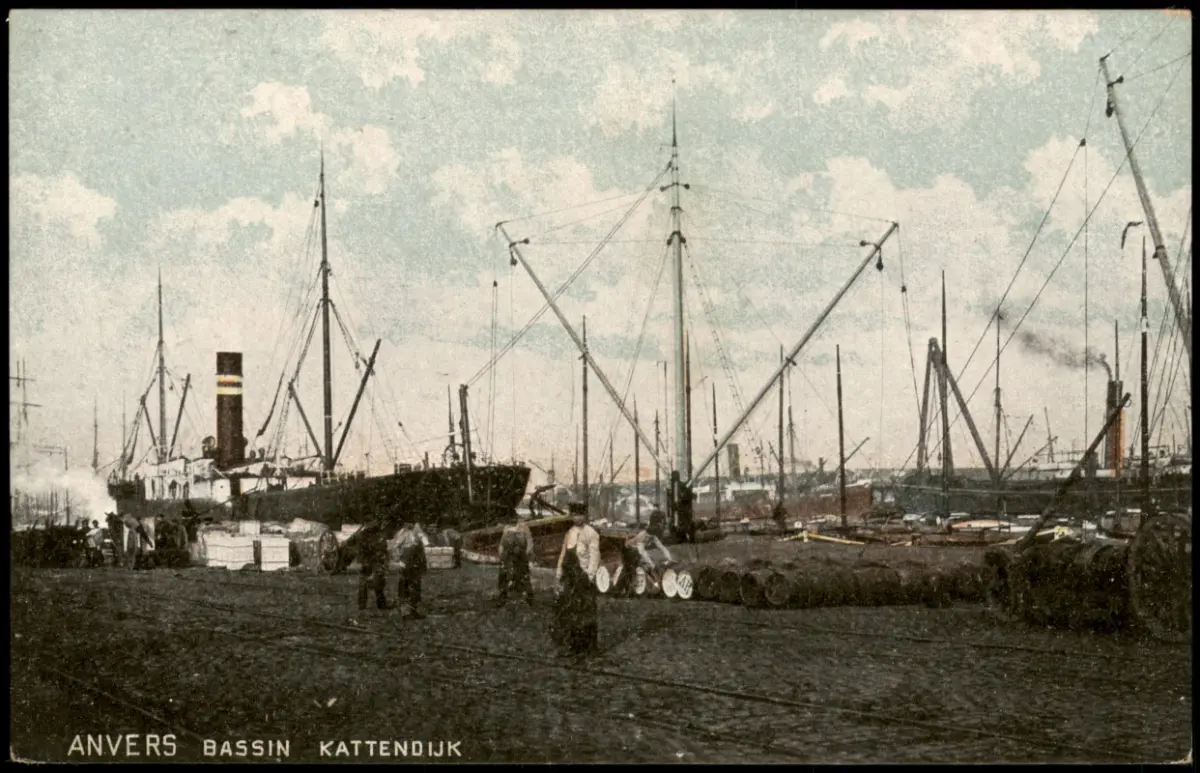 Antwerpen Anvers Hafen BASSIN KATTENDIJK Arbeiter bei Schiffs-Entladung 1910