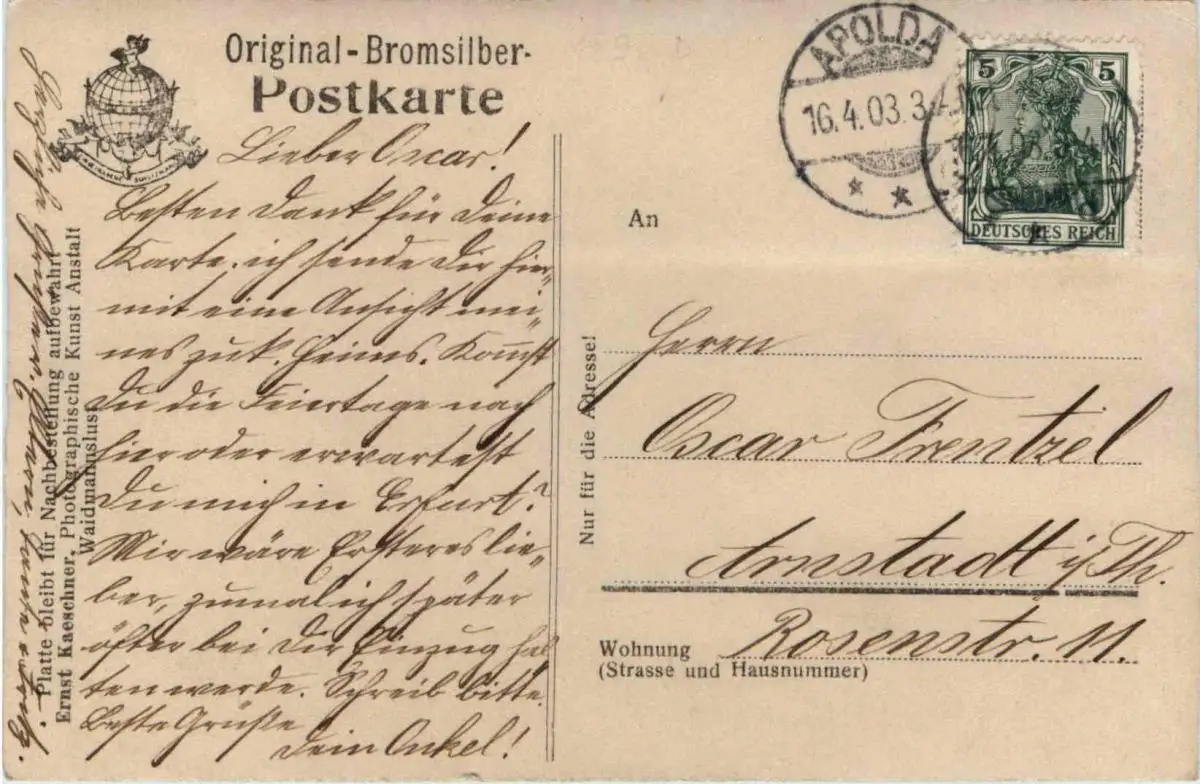 Danke. Alles Bestens. Können Sie mir allenfalls mitteilen, aus welchem Jahr die Postkarte stammt? Besten Dank.