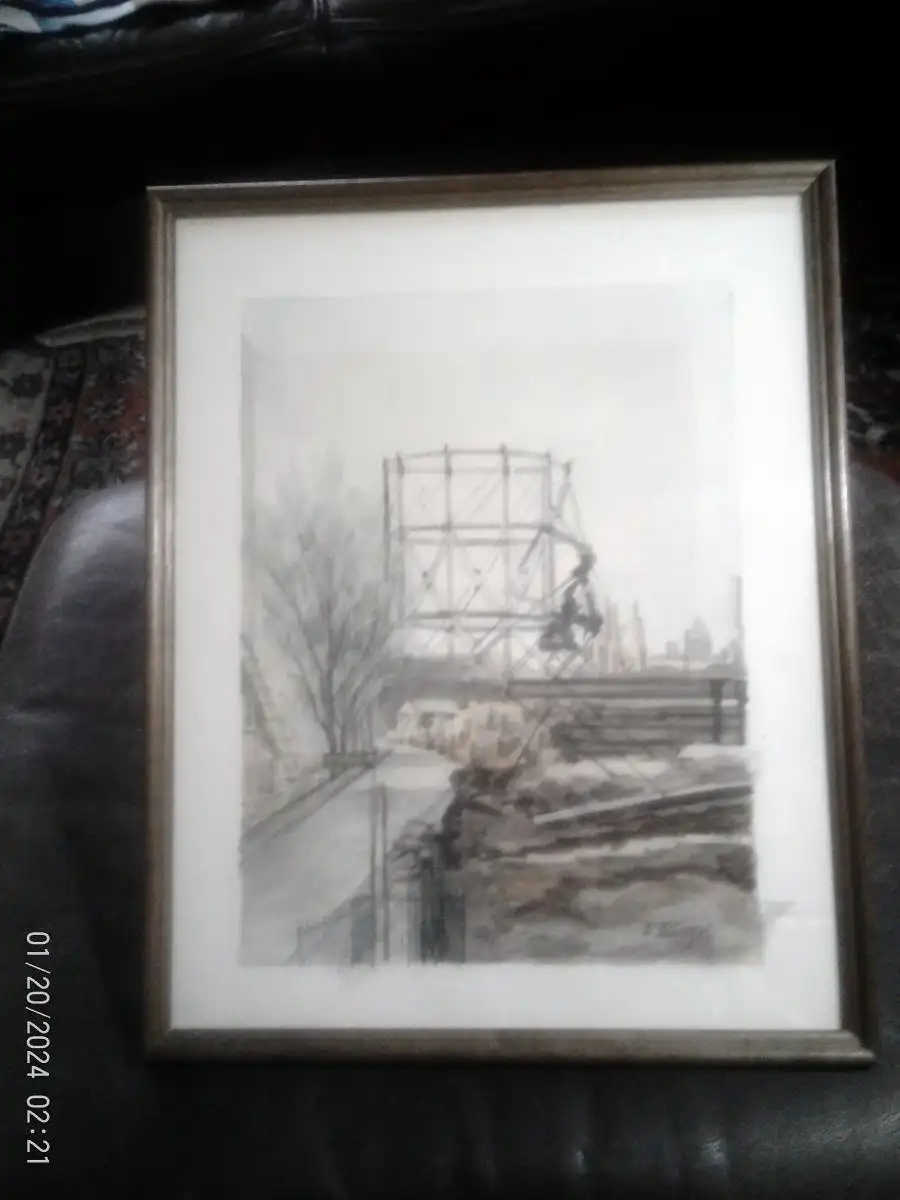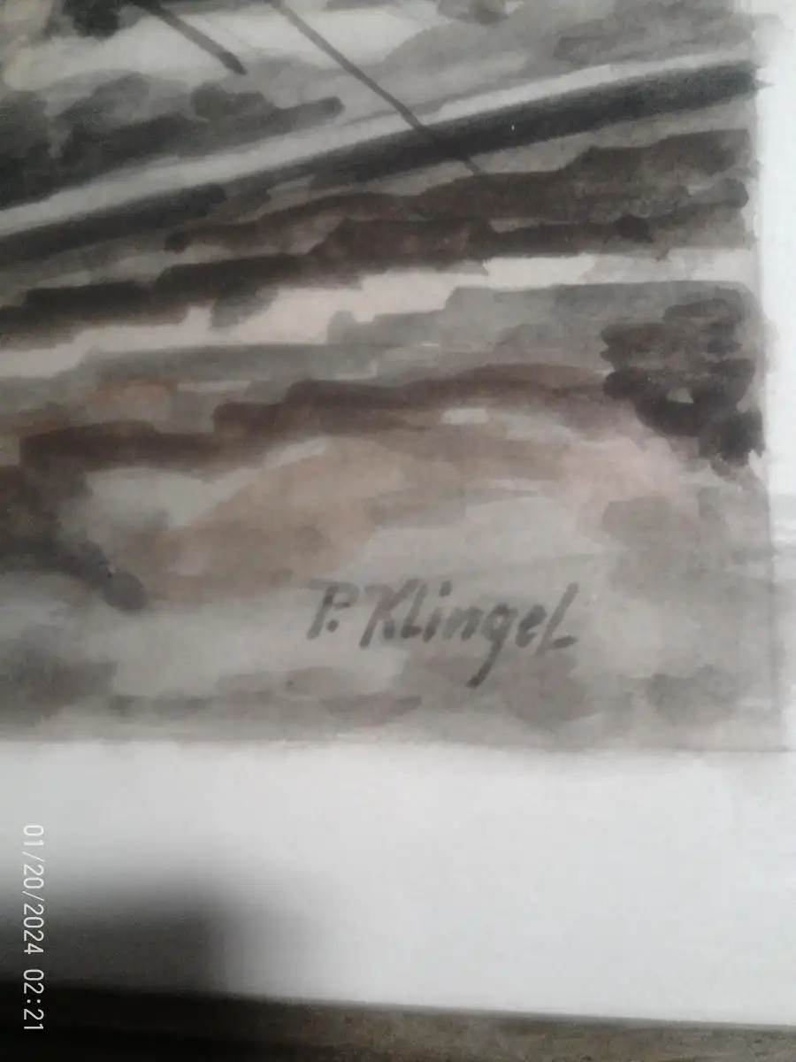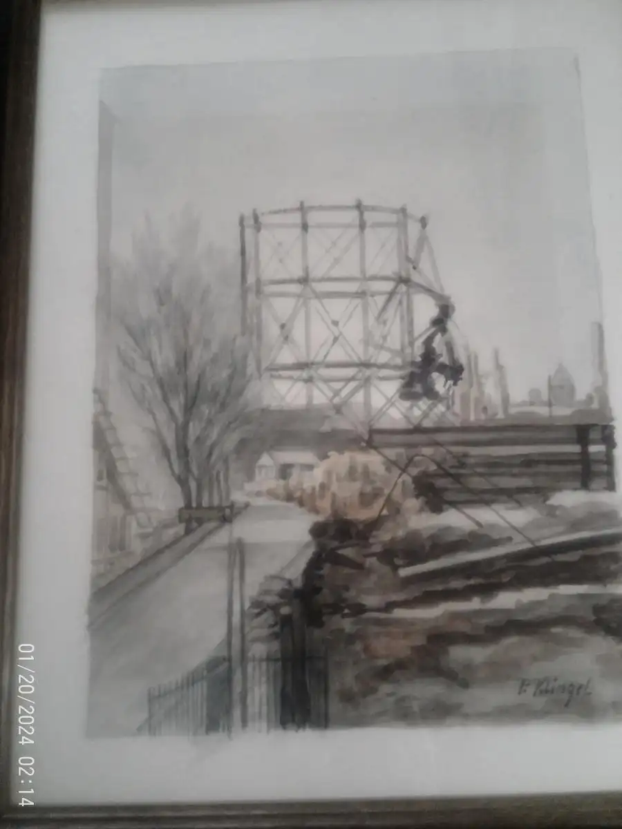 Aquarell Gasometer in Oberhausen um 1930 signiert P oder F Klingel