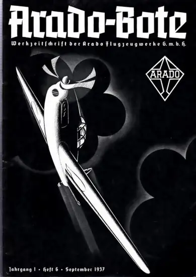 Titel: Arado-Bote. Jahrgang 1, Heft 6, September 1937 - Werkzeitschrift der Arado Flugzeugwerke GmbH. Aus dem Inhalt: Bilder vom Reichsparteitag 1936 / Ausländische Gäste bei Arado / Entwicklungsgeschichte der Arado-Flugzeugwerke, Teil 4 / Nr. 69: Zweiter im Küstenflug 1937 / Aus der Entwicklung der Prüfabteilung (1) u.a