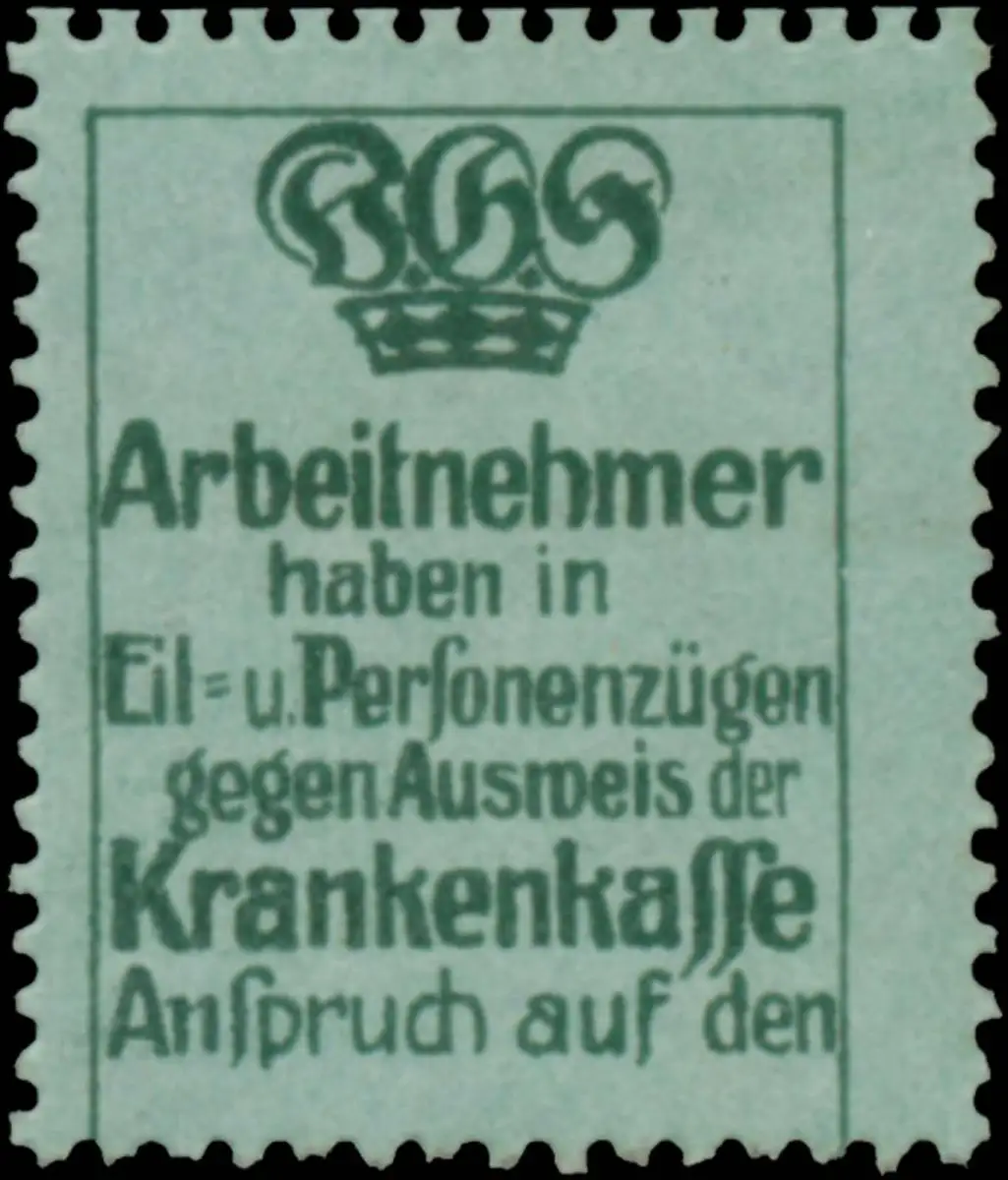 Arbeitnehmer haben in Eil- und Personenzügen gegen Ausweis der Krankenkasse Anspruch auf den halben Fahrpreis nach München, wenn sie in Gruppen von mindestens 10 Personen die Reise antreten. Auskunfterteilung an Fremde im Hauptbahnhof München. Nordbau Arnulfstraße 1, Eisenbahn, Größe/Zustand: 3x2 , guter Zustand, Original alte Reklamemarke die seinerzeit für die Werbung benutzt wurde