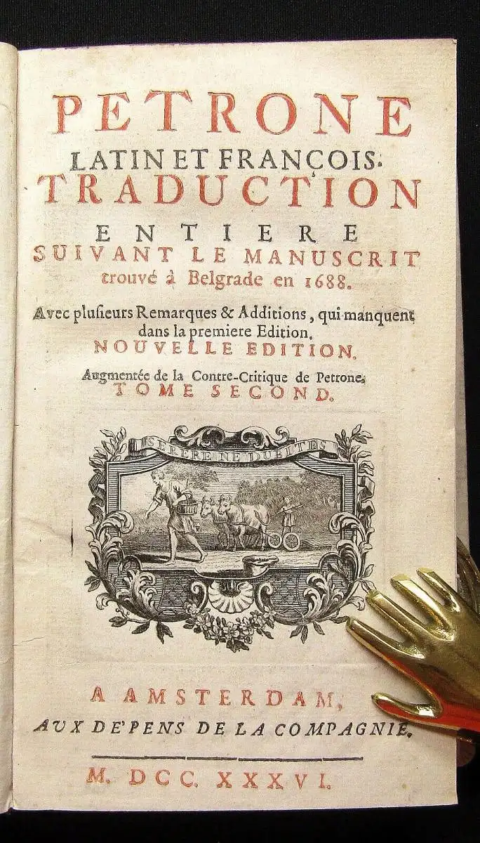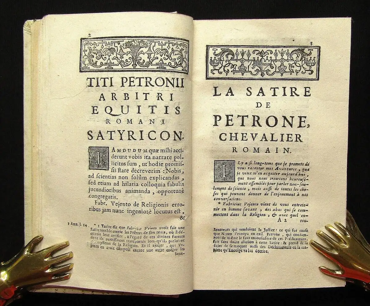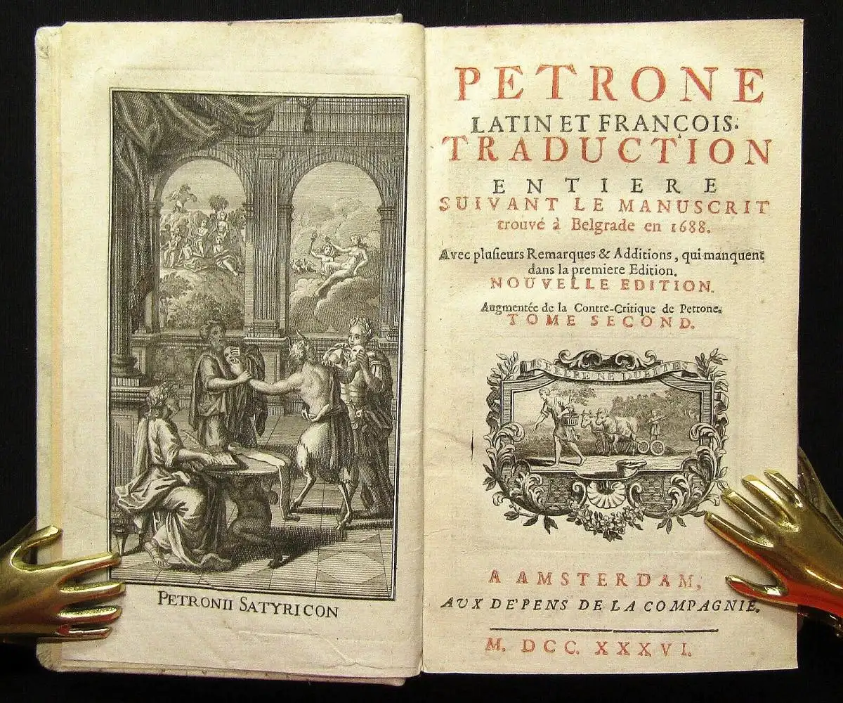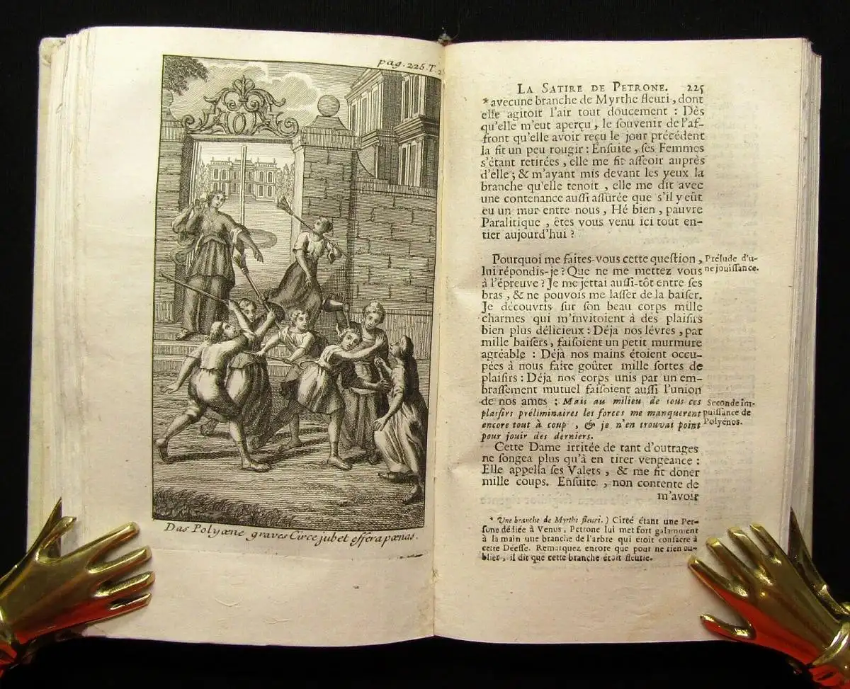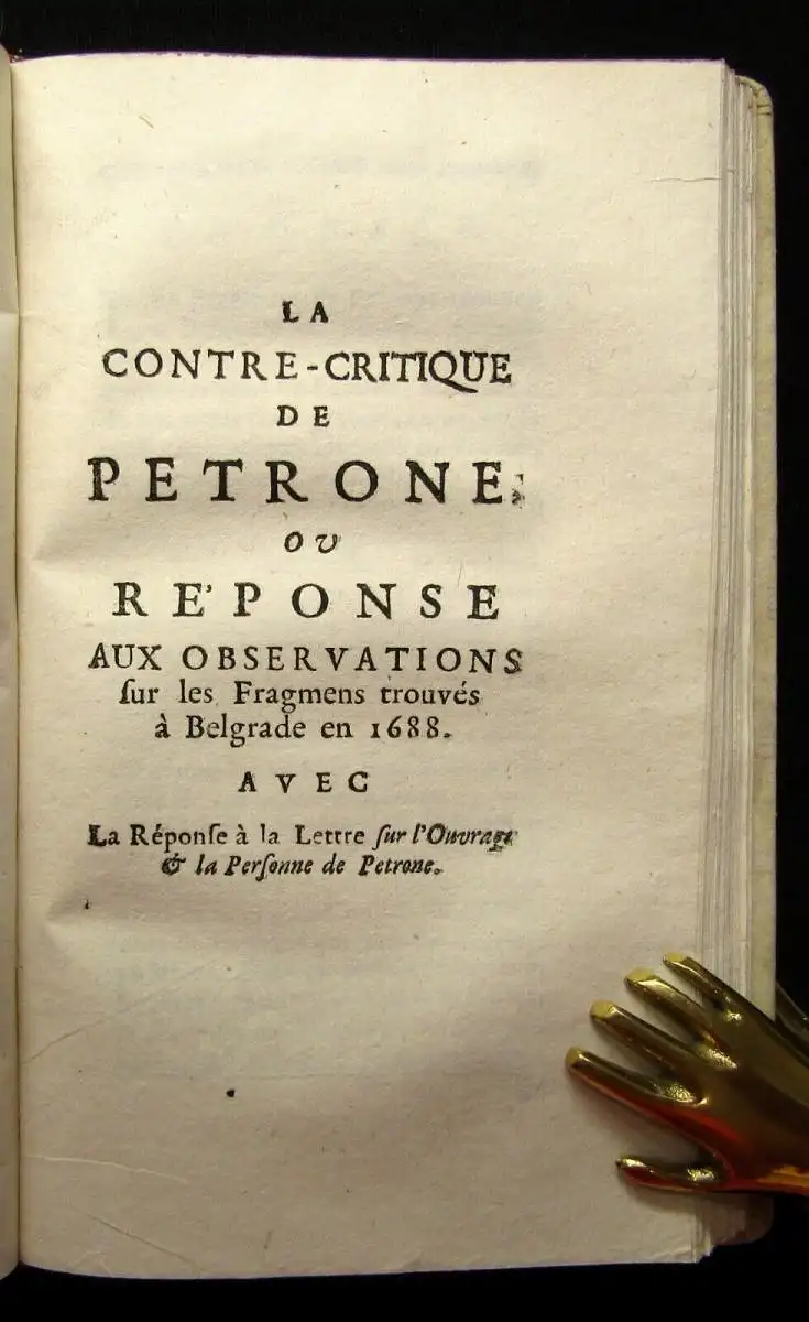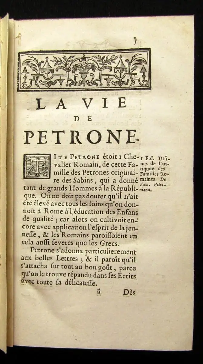 Zweisprachige illustrierte Ausgabe (Latein u. Französisch), die als die beste Nodot`sche gilt (Ebert) und in der erstmals seine "Anti-Kritik" mit abgedruckt ist. Dem Werk sind als Einleitung eine Lebensbeschreibung des Parton nebst Preface und Namensschlüssel vorangestellt.