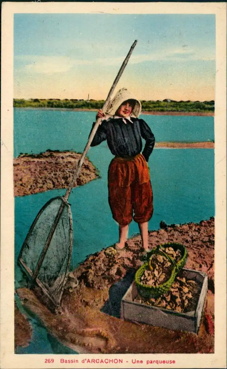 Arcachon Arcaishon Bassin Une parqueuse Frau beim fischen angeln 1937