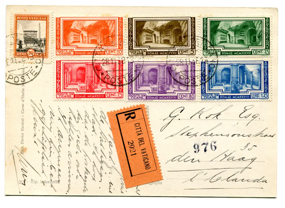 Archäologie Serie auf Postkarte ins Ausland Postkarte - Archäologie Nr. 55/60 komplette Serie + Ergänzung Nr. 22 auf Ansichtskarte für die Niederlande am 28.11.28 - Seltener Euro200-Katalog Cod.1151/WEB