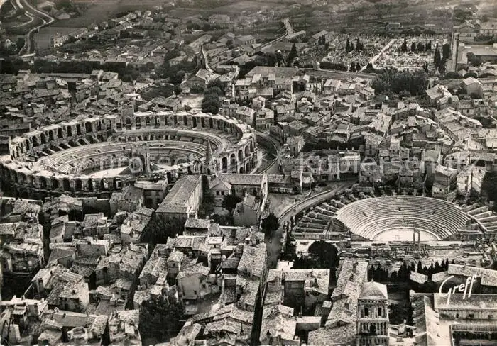 Arles_Bouches-du-Rhone Les Arènes et le Théâtre Antique vue aérienne Arles_Bouches-du-Rhone postalisch nicht gelaufen 1921-1965 Erhaltung siehe scans [FriedD77] Frierer