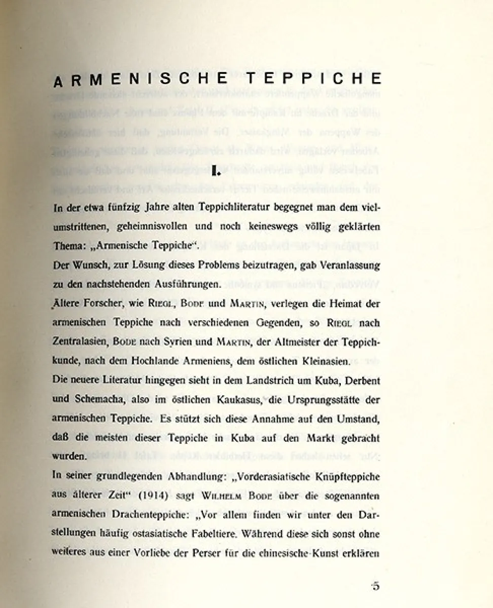 mit GESAMT 46 Seiten davon 17 Seiten Bildtafeln mit photographischen Abbildungen Stil und Merkmale armenischer Teppiche die Muster Motive Farben und Ornamente der Teppiche ihre Größen regionale Unterschiede Techniken iher Fertigung Geschichte und Verbreitung