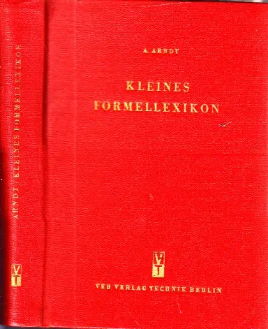 Kleines Formellexikon; Alfred Arndt; Formeln; Lexikon; Mathematik; Physik; Chemie; Kraftfahrzeugtechnik; Luftfahrttechnik; Elektrotechnik; Metallgewerbe; Nachschlagewerk
