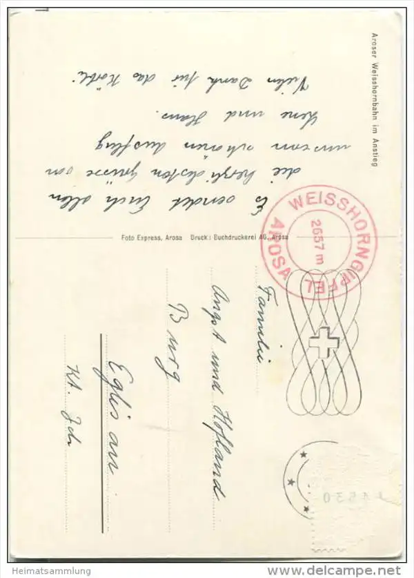 Aroser Weisshornbahn im Anstieg - Verlag Foto-Express Arosa - Marke entfernt (E35771)gel.