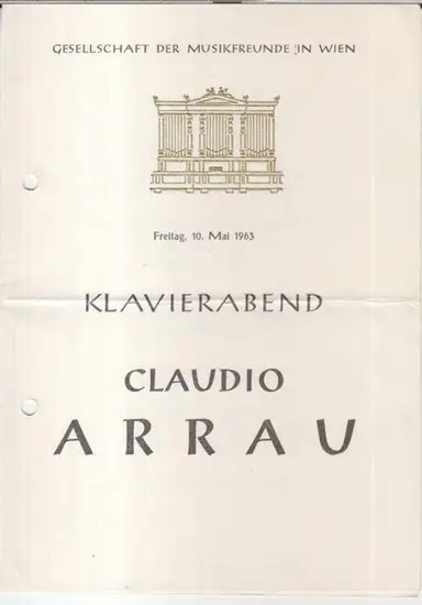Arrau, Claudio. - Gesellschaft der Musikfreunde in Wien: Programmzettel: Klavierabend Claudio Arrau. Freitag, 10. Mai 1963.