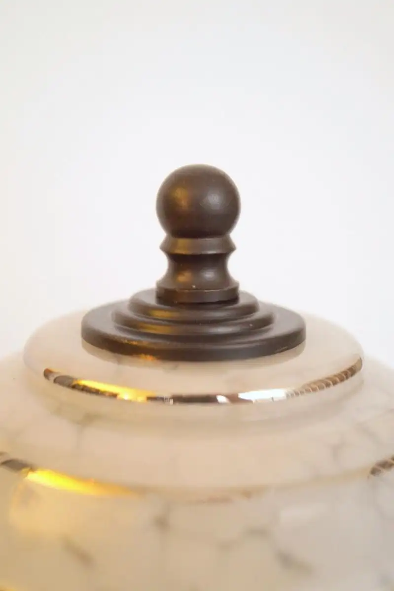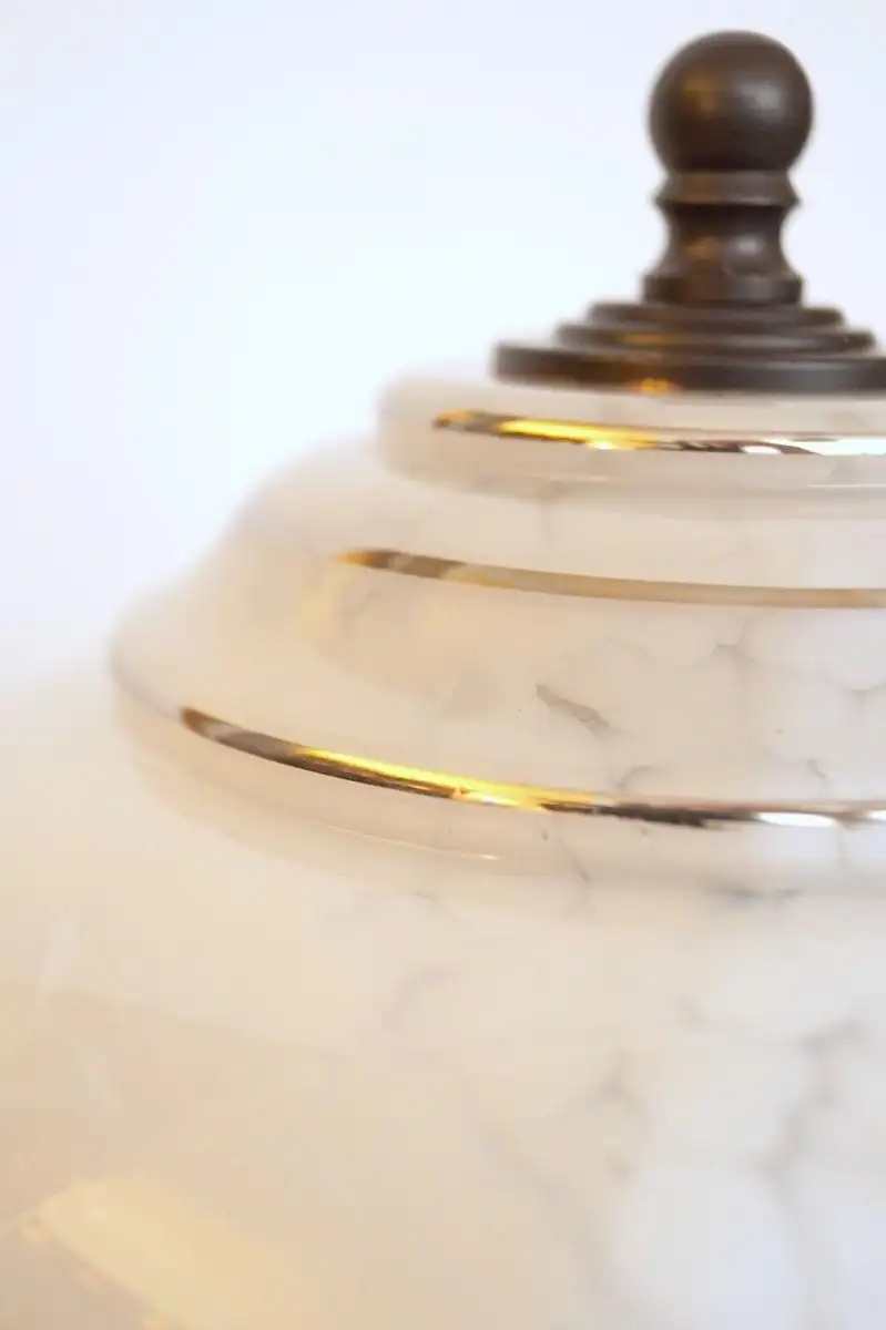 • Antikes original Glas, weiß-meliert, top erhaltenes Silberstreifen-Dekor. Tolle Lichtwirkung!