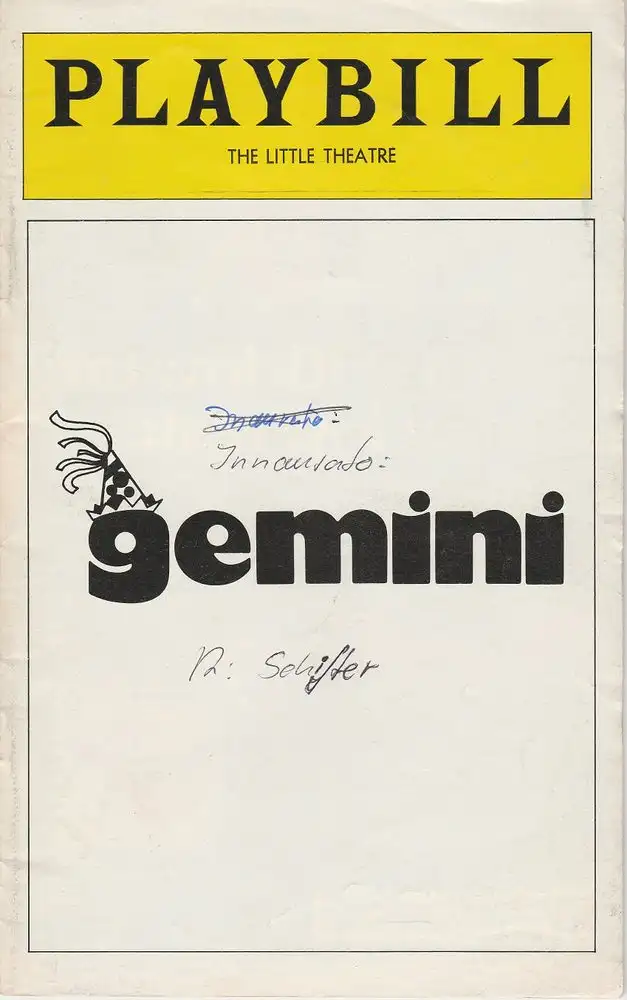 Titel: Programmheft GEMINI Opened May 21, 1977 The Little Theater Playbill August 1977