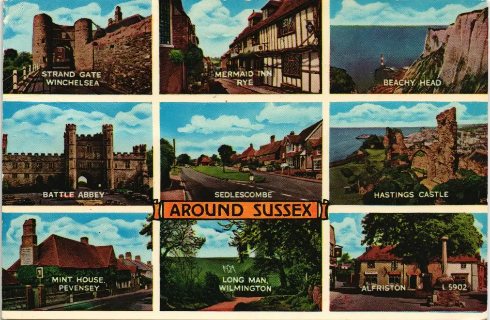 Name: SUSSEX Multi-View Postcard, Battle Abbey, Sedlescombe and more