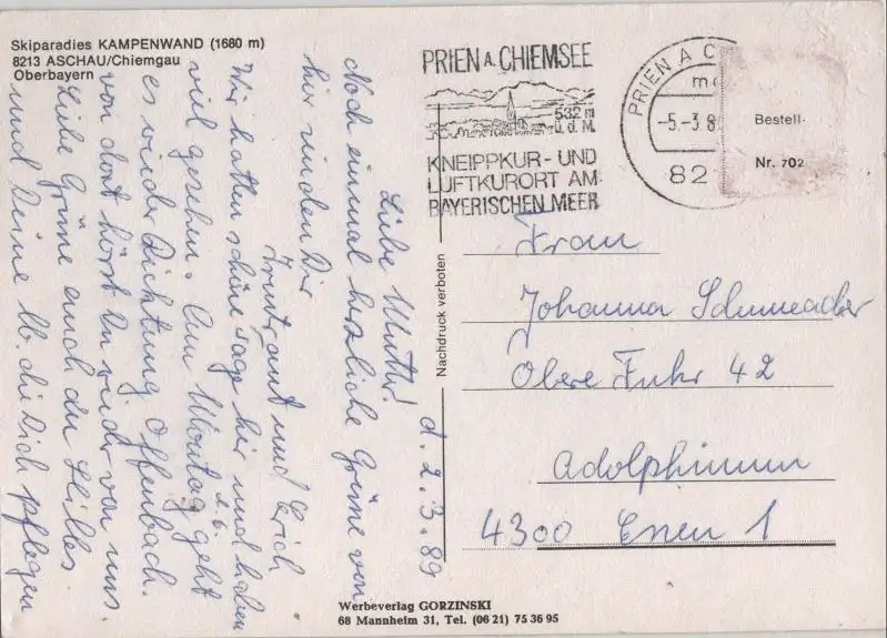 Postleitzahl:83229 (neu) / W 8213 (alt)