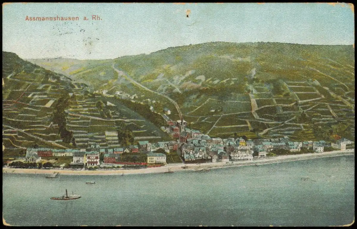 Assmannshausen am Rhein-Rüdesheim (Rhein) Rhein Panorama 1908 WK1 Feldpost