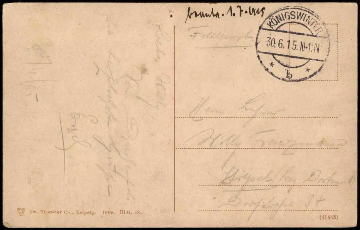 1. Weltkrieg Feldpost gelaufen ab Stempel Königswinter
