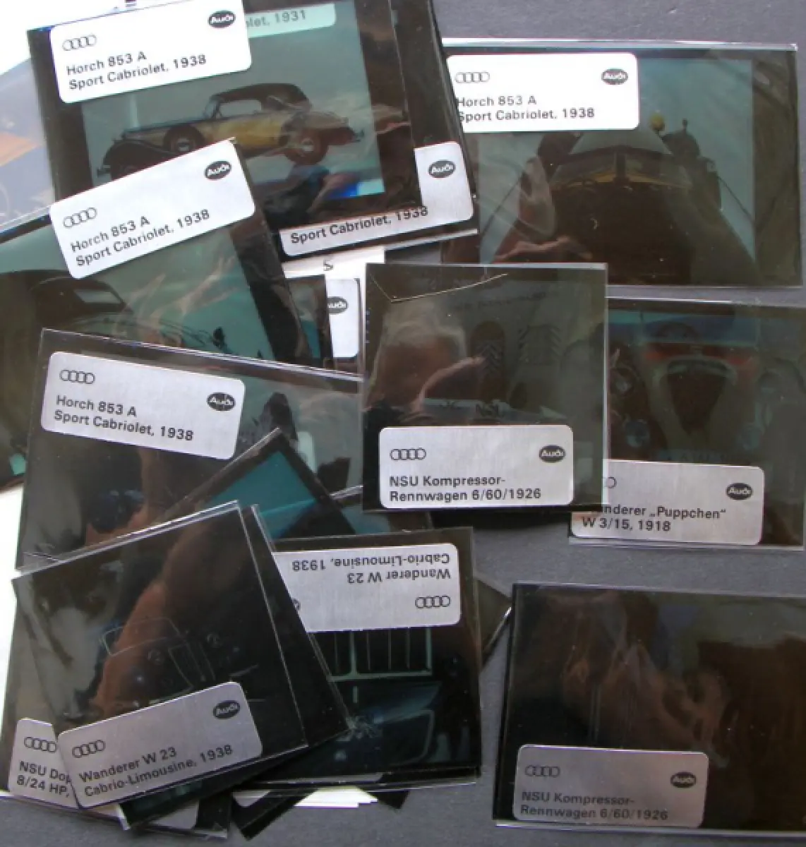 Audi Auto-Union Modellprogramm 1925-1939 Mappe mit 70 Original-Werksdias (10088)