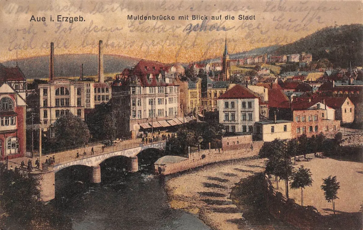 Aue i. Erzgeb. Muldenbrücke mit Blick auf die Stadt AK 1922