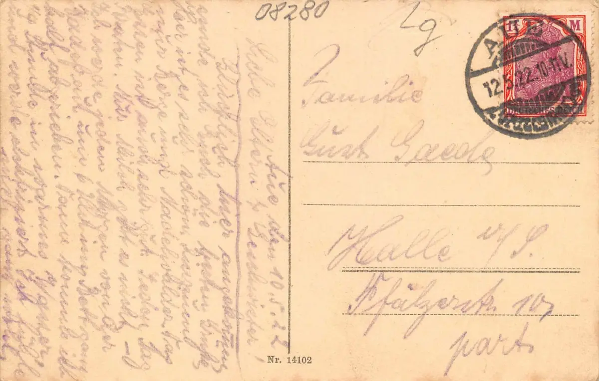 Original Postkarte Maße 9 x 14 cm Rückseite: g elaufen 1922 von Aue Zustand: leichte Gebrauchsspuren