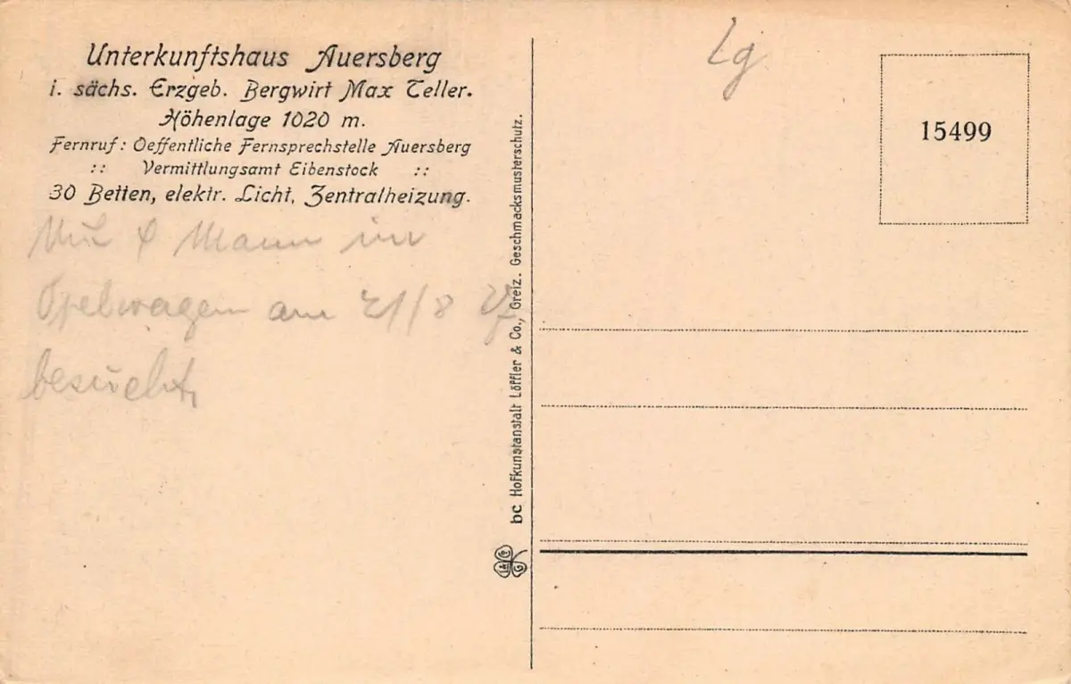 Auersberg Untekunftshaus Erzgebirge Vermittlungsamt Eibenstock AK