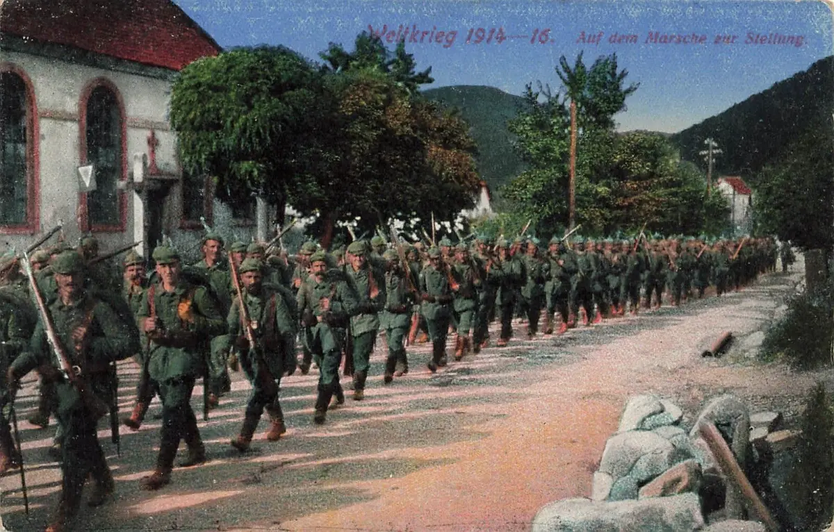 Auf dem Marsche zur Stellung Patriotika Postkarte AK 1918