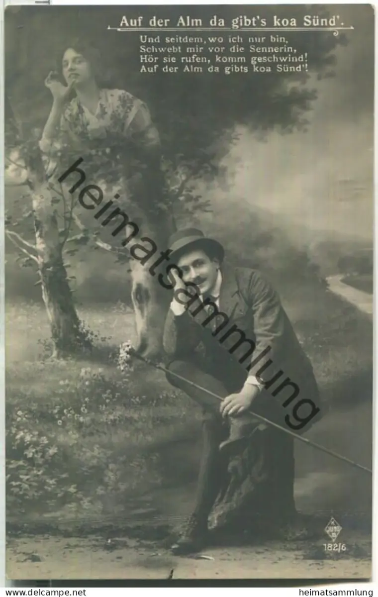 Auf der Alm da gibt' s koa Sünd... - Verlag K. Juno B. 182/6 (E88094) gel. 1914