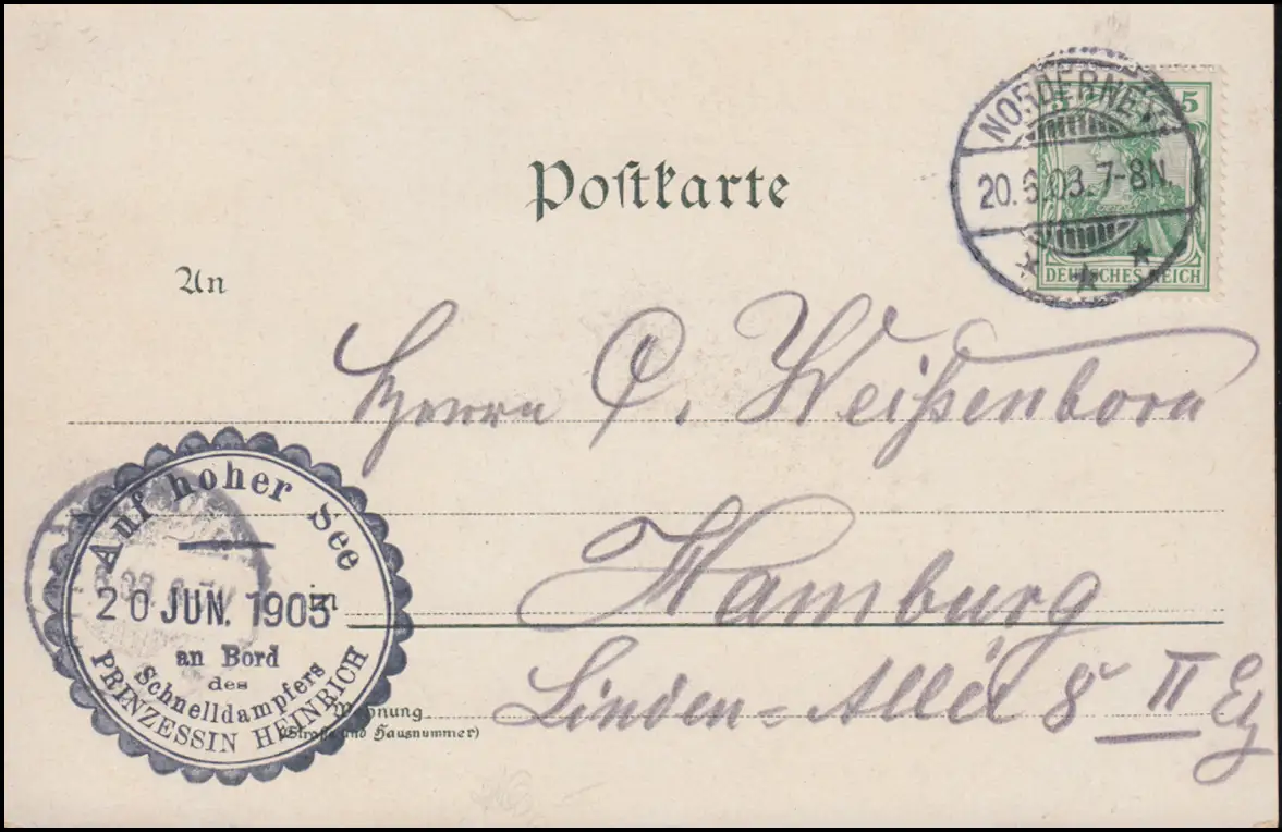 Auf hoher See an Bord des Schnelldampfers PRINZESSIN HEINRICH 20.6.1903 auf AK