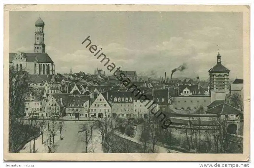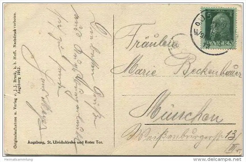Augsburg - St. Ulrichskirche und Rotes Tor - Verlag J. J. Brack Augsburg - Eckknick oben links (E12212) gel. 1913