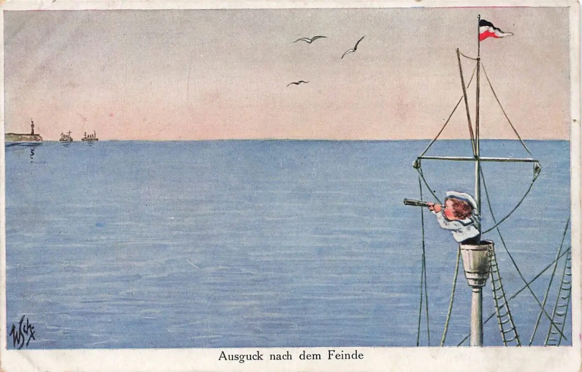 Ausguck nach dem Feinde kleiner Marine Soldat Patriotika Postkarte AK