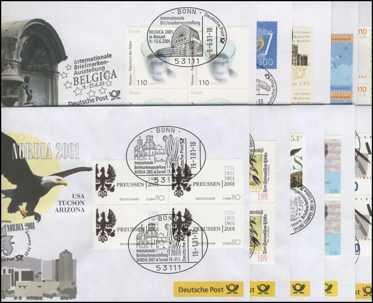 Ausstellungsbelege Jahrgang 2001 Nr. 57 bis 66 komplett mit 10 Belegen