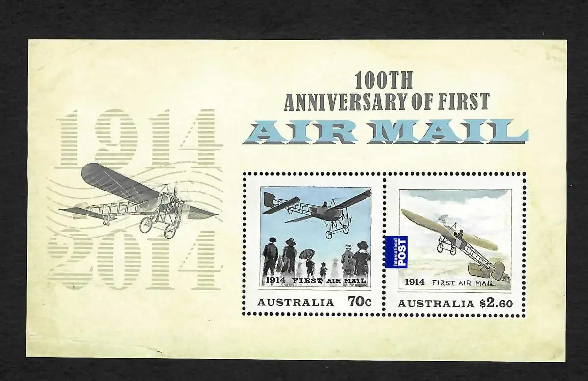Australien 2014: 100th Anniversary of first Air Mail, Block, postfrisch