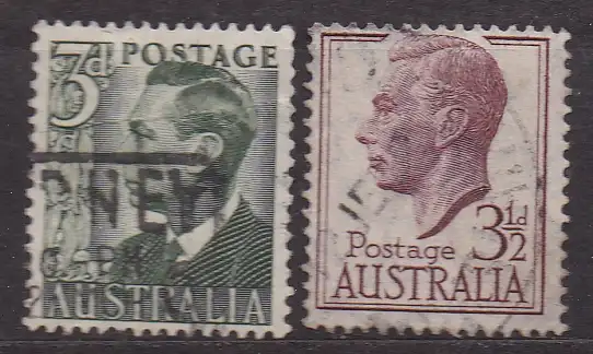 Australien, Mi-Nr. 203 + 215 gest., König Georg VI.