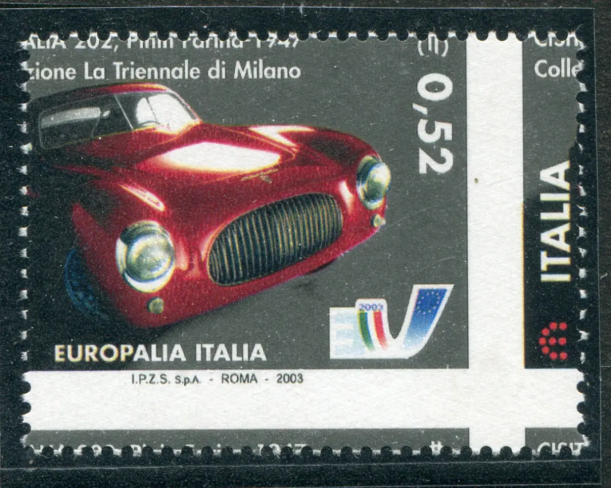 Auto - Europalia Euro 0,52 Sorte in beide Richtungen verschobene Verzahnung Vollgummi - Europalia Euro 0,52 Nr. 2707 schönes Exemplar mit stark in beide Richtungen verschobener Verzahnung - Aufschrift ITALIEN rechts statt links - Ungewöhnlich - Code 1167 / OUTLET