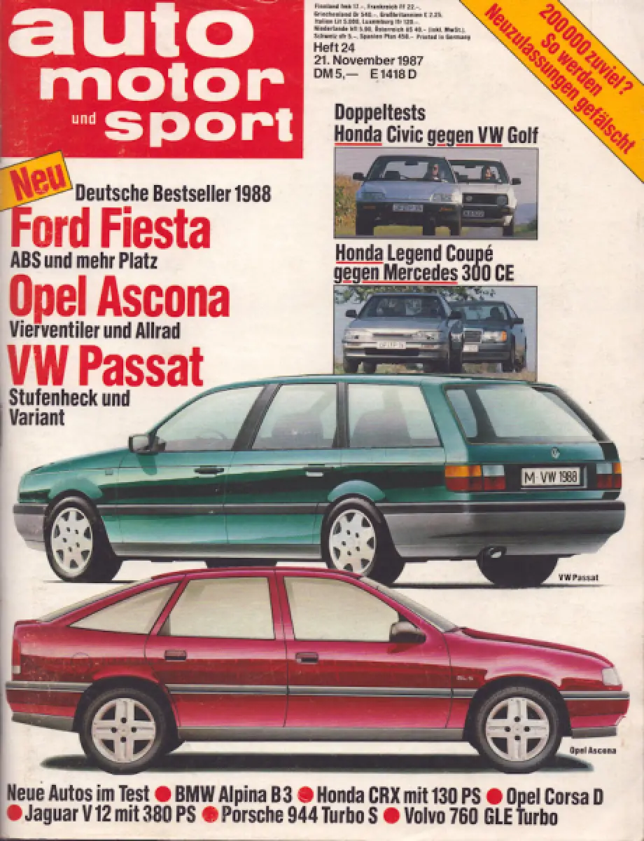 Honda Legend Coupé / Mercedes-Benz 300 CE Honda Civic / VW Golf Honda CRX 1.6i-16 Porsche 911 Roadster Eller Jaguar XJ-SC Porsche 944 Turbo S Opel Corsa 1.5 D BMW Alpina B 3 Volvo 760 GLE Turbo Mit Gebrauchsspuren