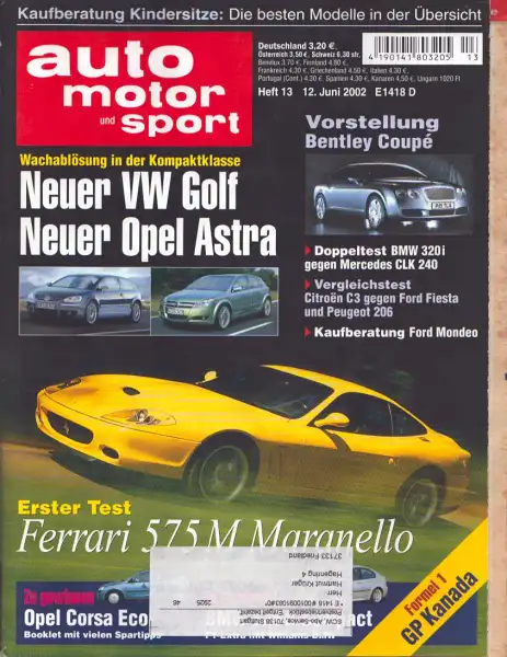 Ferrari 575M Maranello Lancia Phedra Bentley GT Coupé 2+2 Audi TT Roadster 1.9 T Quattro Smart CDI / Mazda MPV Citroen C 3 HDI / Ford Fiesta TDCI / Peugeot 206 HDI Hummer H 2 Porsche Boxster Ford Mondeo BMW 320 CI / Mercedes-Benz CLK 240 Alfa Romeo Brera Mit Gebrauchsspuren