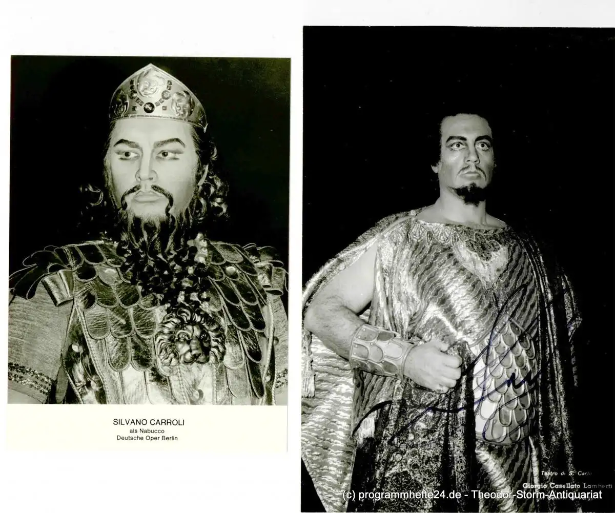 original Foto von Foto Troncone, Neapel, von Silvano Carroli mit seinem Namenszug signiert, sowie 1 Autogrammkarte Silvano Carroli von der Deutschen Oper Berlin ( Nabucco ) NICHT signiert. Format Foto: ca. 18 x 12 cm. Format Karte: ca. 14,5 x 10,4 cm. Zustand: gut, sehr gut