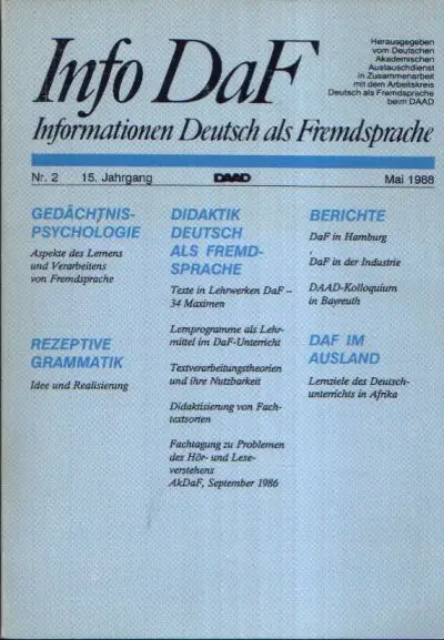 Informationen Deutsch als Fremdsprache Info DaF Nr. 2, 15. Jahrgang