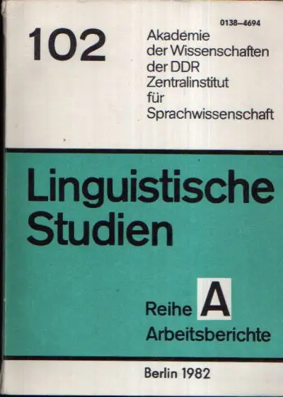 Sprachwissenschaftliche Arbeiten der Germanistenkommission Linguistische Studien Reihe A Arbeitsbericht 102