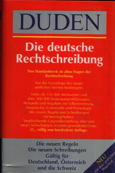 Duden Die deutsche Rechtschreibung; Das Standardwerk zu allen Fragen der Rechtschreibung; Autorenkollektiv; Nachschlagewerk; Lexika; Zeichen von besonderer Bedeutung; Auswahl der Stichwörter; Anordnung und Behandlung der Wörter; Herkunft der Wörter; Erklärungen; Aussprache; Im Wörterverzeichnis verwendete Abkürzungen; Richtlinien zur Rechtschreibung; Richtlinien für Schriftsatz; Hinweise für Maschinenschreiben; Korrekturvorschriften; Griechische Alphabet; Vergleichende Gegenüberstellung; Wörterverzeichnis