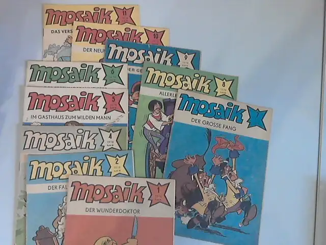 Mosaik; Erzählung; Geschichte; Abenteuer; Spannung; Nr. 1/1978: Der Wunderdoktor; Nr. 2/1978: Der falsche Herzog; Nr. 4/1978: Die Reise nach Wien; Nr. 5/1978: Im Gasthaus zum Wilden Mann; Nr. 6/1978: Der Festungsbaumeister; Nr. 7/1978: Der grosse Fang; Nr. 8/1978: Allerlei Überraschungen - Nr. 9: Der geraubte Prinz; Nr. 10: Der neue Oberst; Nr. 11/ 1978: Das verschwundene Regiment ; Schöne Aussichten