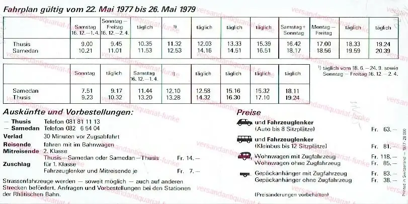 guter bis sehr guter Zustand, geringe Gebrauchs- und Alterungsspuren: Ränder und Ecken teils leicht knittrig / eselsohrig, Fahrplan / Prospekt, Papier, ca. 10,5 x 21, 1 Blatt, beidseitig bedruckt