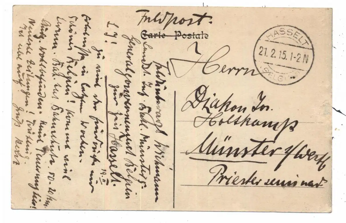 B 3500 HASSELT, Eglise St. Quentin / Sint Quentin Kerk, 1915, deutsche Feldpost
