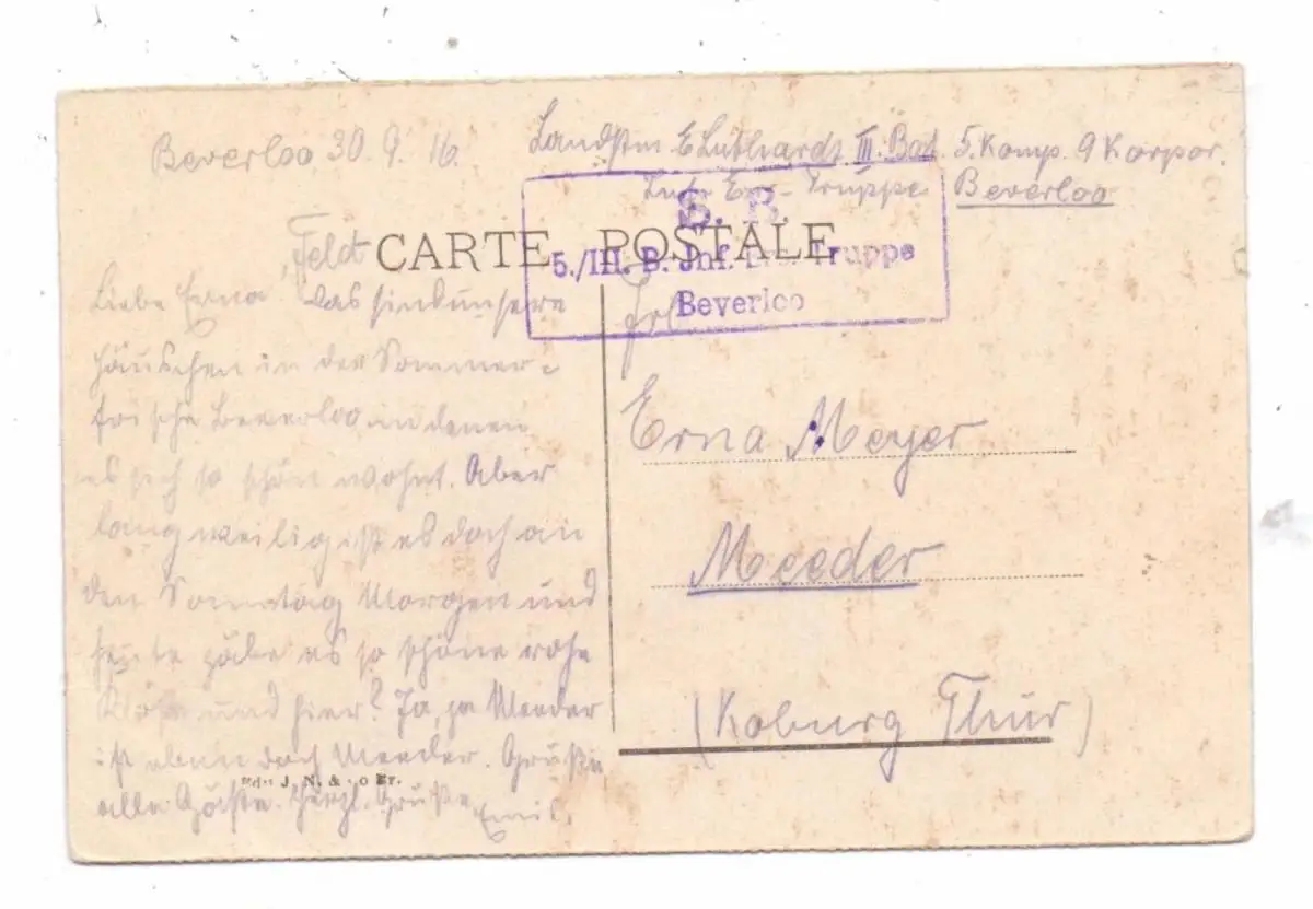 B 3580 BERINGEN - BEVERLOO, Blockhäuser, 1916, deutsche Feldpost