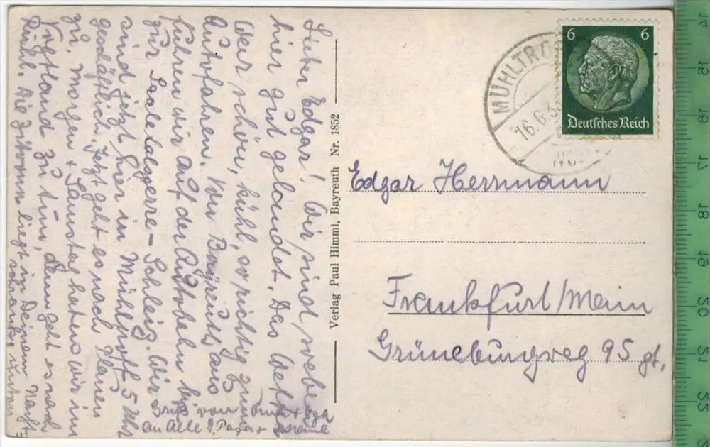 BAYREUT; WAGNER, 1938, Verlag: PAUL HIMMEL, Postkarte, Frankatur, Stempel, 16.6.1938, Erhaltung: I-II, Karte wird in Klarsichthülle verschickt.(H)