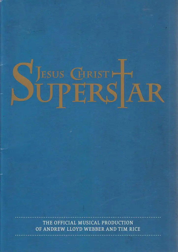 The Official Musical Production of Andrew Lloyd Webber and Tim Rice. Directed by: Bob Tomson, Bill Kenwright. Designed by: Paul Farnsworth. Choreographed by: Carole Todd. Mitwirkende: Glenn Carter, Tim Rogers, Rachel Adedeji, Cavin Cornwall, Alistair Lee, Tom Gilling, Edward Handoll, Andy Barke, Tim Oxbrow, u.a. - Theaterprogramm, Opernprogramm, Ballettprogramm, Musicalprogramm, Konzertprogramm, Theatermemorabilia, Programmhefte Sammlung, deutsche Theatergeschichte.