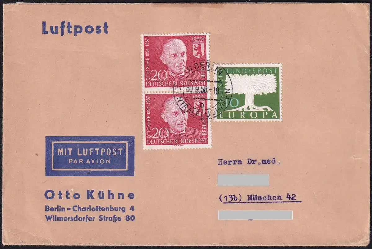 BERLIN 1958 Mi-Nr. 181 senkrechtes Paar auf Brief