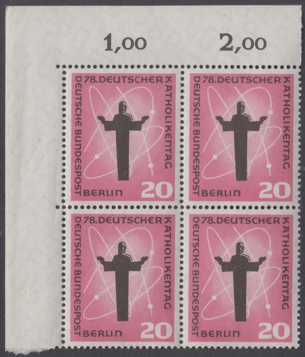 BERLIN 1958 Michel-Nummer 180 postfrisch BLOCK ECKRAND oben links - Deutscher Katholikentag, Berlin