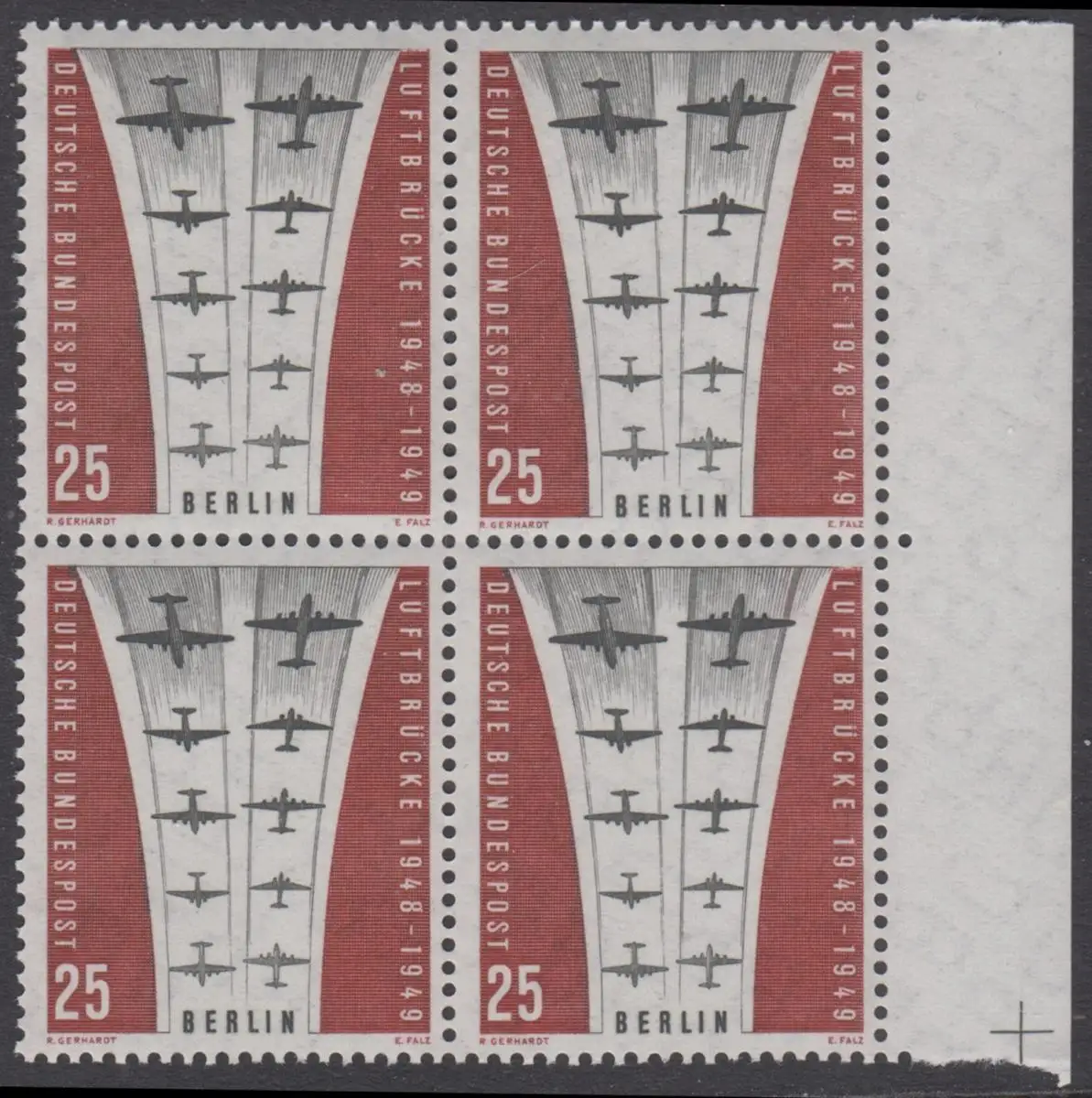 BERLIN 1959 Michel-Nummer 188 postfrisch BLOCK Randmarken rechts - Berliner Luftbrücke